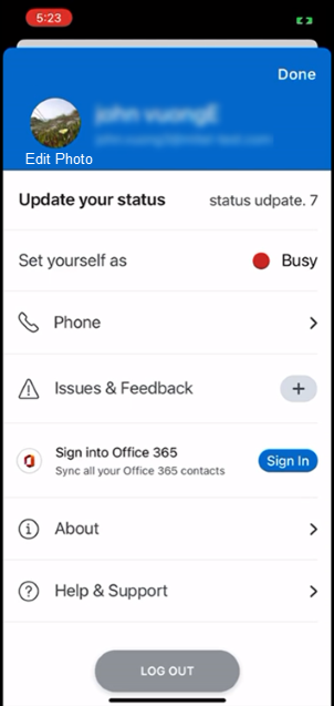 You will be signed in with your Microsoft Office 365 account and can search for organizational contacts. To sign out from your Microsoft 365 account, click Sign Out in the settings page. Click Continue to confirm the sign out.
