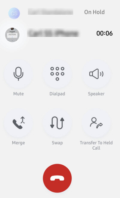 Merge: Merge an active call with a call on hold to create a three-person conference call.