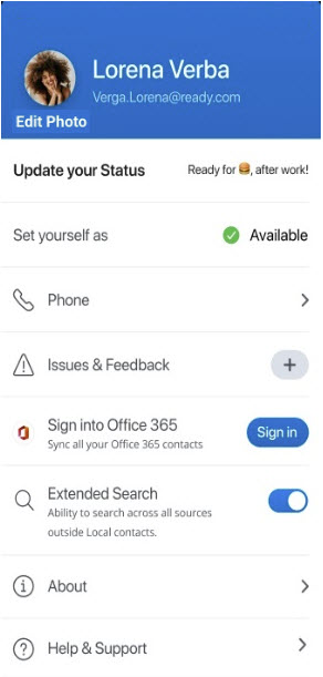 Tap this option to set your presence in the app, and to add a personal message as your status. For more information, see Set Your Status Message. |