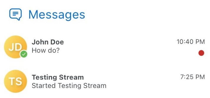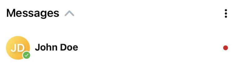 - The Messages menu displays a red notification dot along with the sender's name in bold letters to indicate that the message is unread.