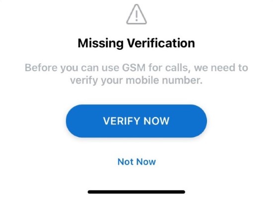 - Tap VERIFY NOW to continue the verification process. Tapping Not Now cancels the process.