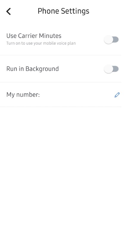 - Slide the Use Carrier Minutes toggle button to the right. The toggle button turns blue indicting that all outgoing and incoming calls will be routed through your carrier network.