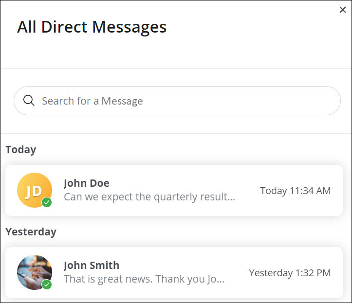- The All Direct Messages panel opens displaying a list of all the existing messages in the chronological order.