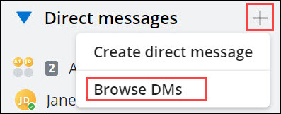 icon in the Direct messages section. A panel opens displaying the Browse DMs option.