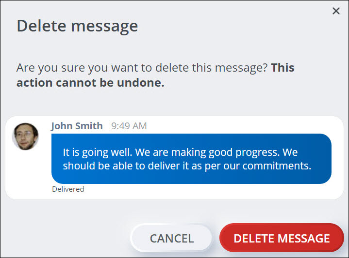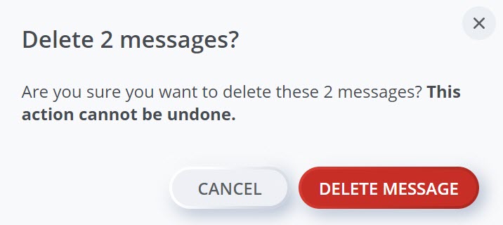 - Click DELETE MESSAGE and close the panel. Clicking CANCEL cancels the operation.