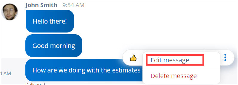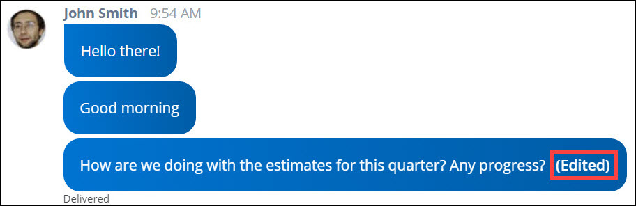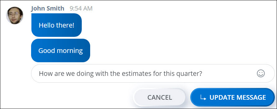 - Click UPDATE MESSAGE. The original message will be replaced with the edited message and will be marked as (Edited). Clicking CANCEL cancels the operation.