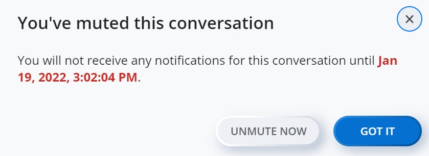 - Click GOT IT to accept the changes and close the panel. Clicking UNMUTE NOW cancels the operation.