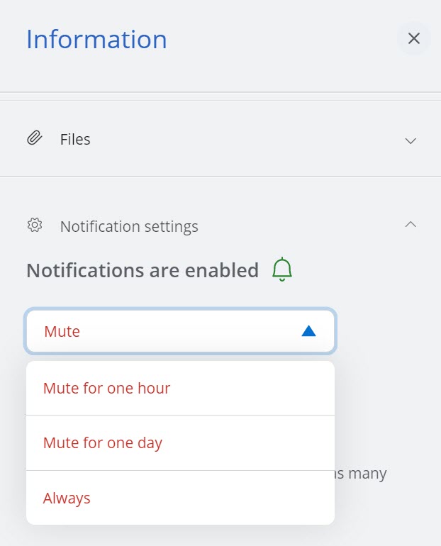 - Click the Mute drop-down list and select for how long you want to mute the notifications from the options Mute for one hour, Mute for one day, and Always.
