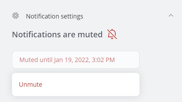 - To mute or unmute the notifications for a message, click the Notifications settings option and follow the steps mentioned in Mute or Unmute Message Notifications.