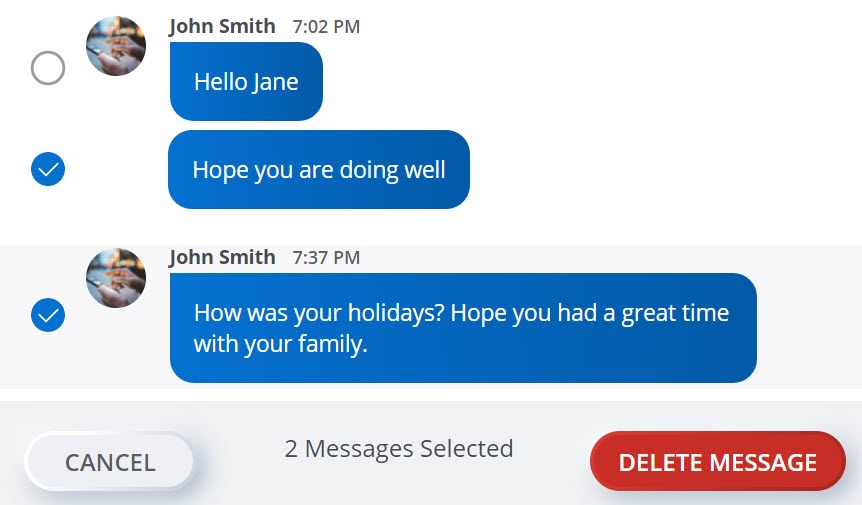- Select the messages you want to delete, and click DELETE MESSAGE.