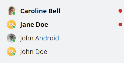 The contact’s name appears in bold letters, and a red dot appears to the right of the contact’s name marking the message as unread.