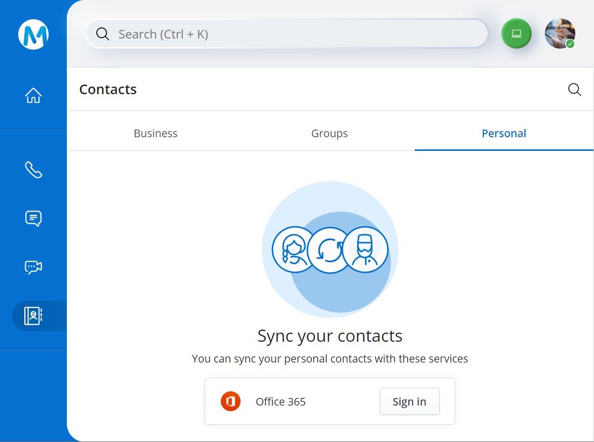 - After you edit or delete a personal contact in your Office 365 account, for the contact to be updated in the Mitel One web application, you must perform a manual re-sync of the application with Office 365 if your Office 365 authentication has expired. You can do this by clicking the Sync contacts option in the Personal tab of the Contacts menu of the application.