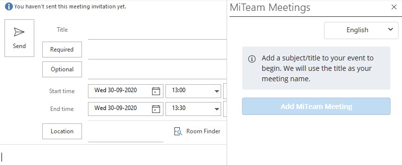 - Enter the meeting details such as Title, Start Time, End time and Location, and add the invitees.