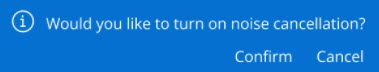 You must click Confirm when this message appears to enable noise cancellation. Clicking Cancel will disable noise cancellation.