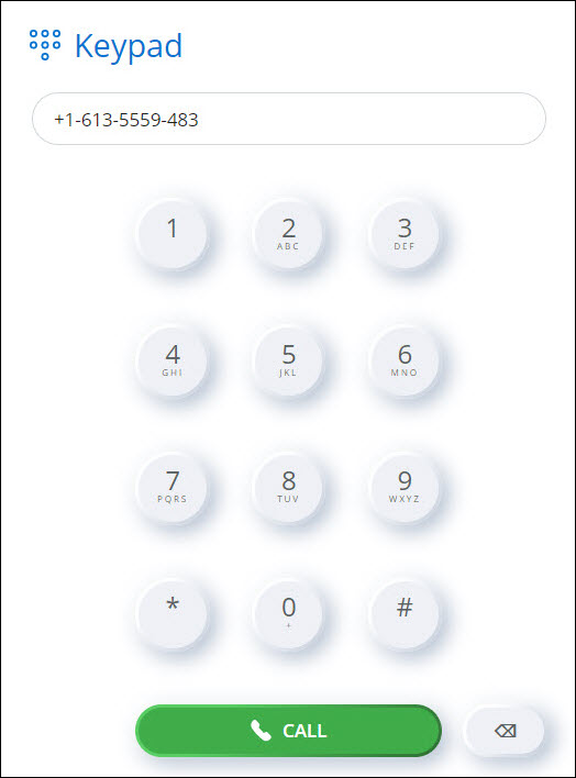 - Dial the telephone number using the Keypad, or enter or paste the number in the field provided.