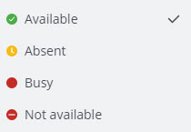 To set your presence, hover over your avatar from the Home screen and click the corresponding option to set your presence to Available, Busy, Away, or Not available.