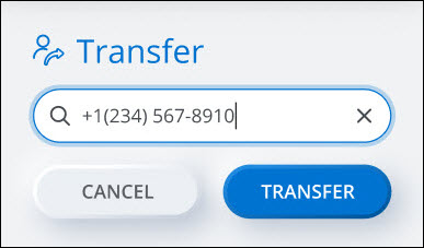 - After selecting the contact, click TRANSFER to transfer the call to the contact. Click CANCEL to cancel the transfer and to return to the call screen.
