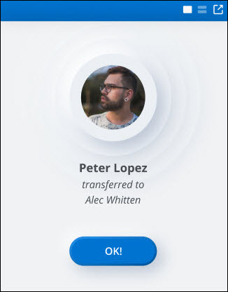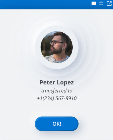 - This completes the Blind Transfer. The call ends for you and the contact at the other end is placed on the transferred call. Click OK! to close the call screen.