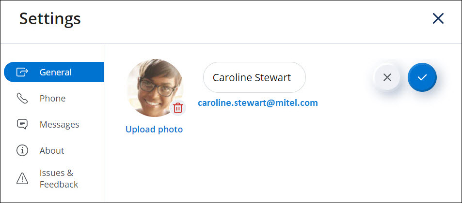 Note: You cannot edit your name in the Mitel One application.