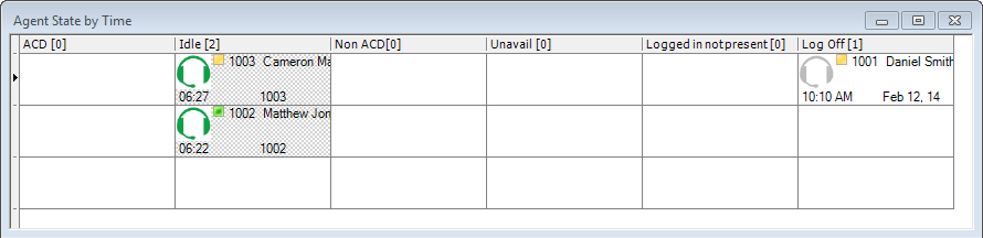 Contact Center Client’s Agent, Employee, and Extension real-time monitors provide a visual indication if agents fail over to a resilient media server. In an Agent monitor (Agent State by Position, Agent State by Time, and Agent State by Queue by Time), if an agent fails over to the secondary voice media server, a cross-hatch pattern displays in the agent’s cell in the monitor. (See the following figure.)
