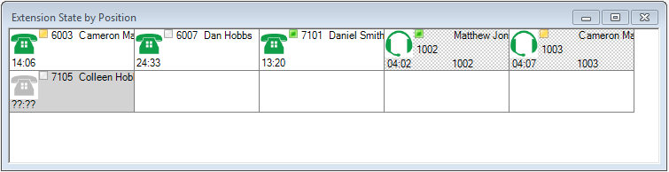 In an Extension monitor, if a logged in agent who is associated to an extension fails over to the secondary voice media server, then a cross-hatch pattern is applied to the agent’s associated extension in the extension monitor. (See the following figure.)