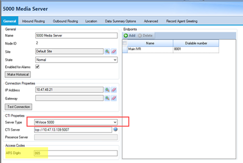 The ARS Digits field is used only by the MiVoice 5000 media server and MiVoice Connect.