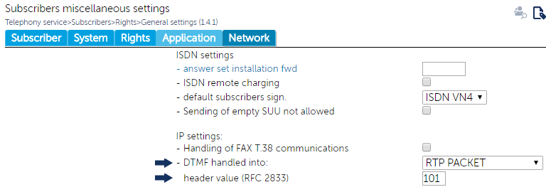 Telephony service > Subscribers > Rights > General settings (1.4.1)