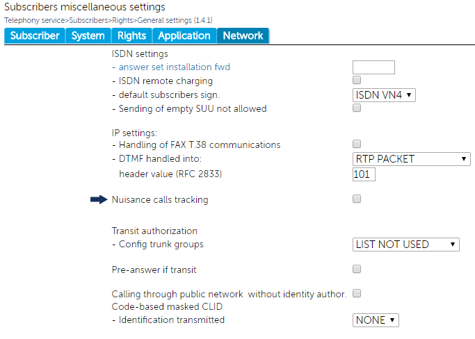 Telephony Service > Subscribers > Rights > General Settings (1.4.1)