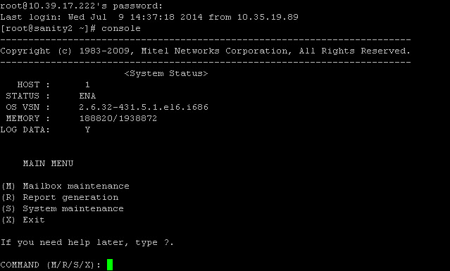 Note: For detailed Text Console instructions, refer to the NuPoint UM System Administration help file posted at Mitel OnLine.