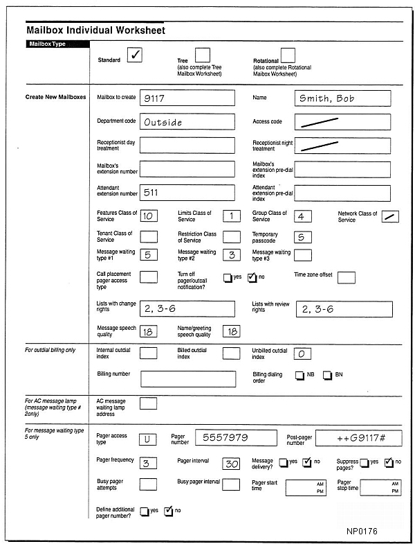 The Mailbox Worksheet organizes information you need to configure individual mailboxes for paging, message delivery, or call placement, or any combination of these functions.