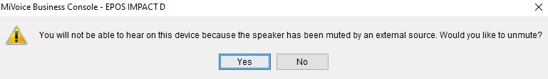 MiVoice Business Console alerts users when the PC volume is lowered to zero or the headset speakers are muted.