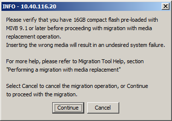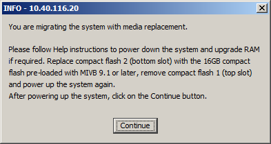 If you do not have a 16 GB CF handy, then abort the migration and perform reverse migration. See Software > Migration > Reverse Migration of an AX Controller if the 16 GB CF is unavailable or corrupt in the Troubleshooting Guide.