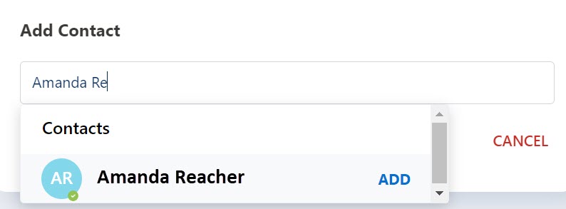 - In the Search field, type the name of the contact. The Search field displays a list of contacts whose names match the letters that you type. Hover over the name of the contact you want to add, and click ADD to add the contact as a speed dial. Clicking Cancel cancels the operation.