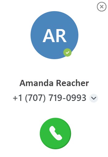 - From the dialog box that opens, click Call. A window opens displaying the name, default number and avatar of the contact.