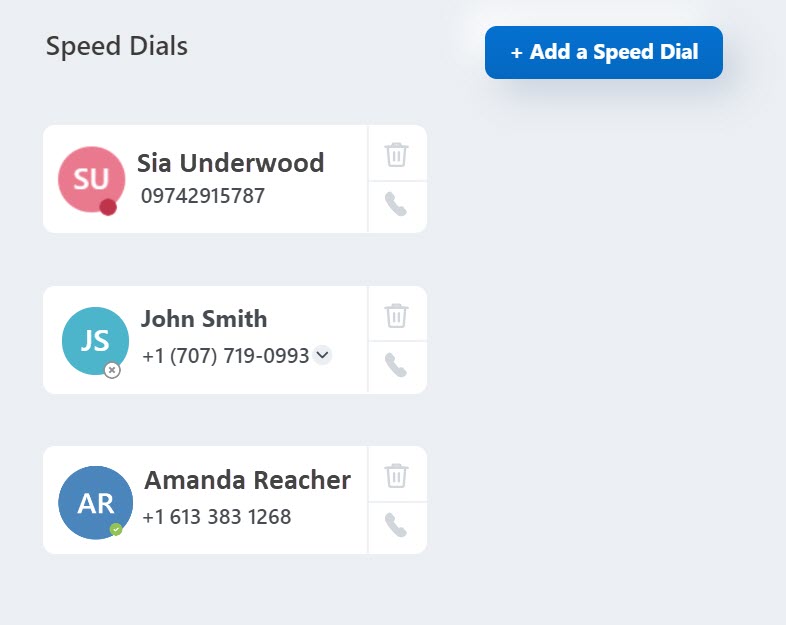 icon associated with the speed dial you want to delete. - In the confirmation panel that opens, click Delete to confirm deletion. Clicking Cancel cancels the operation.