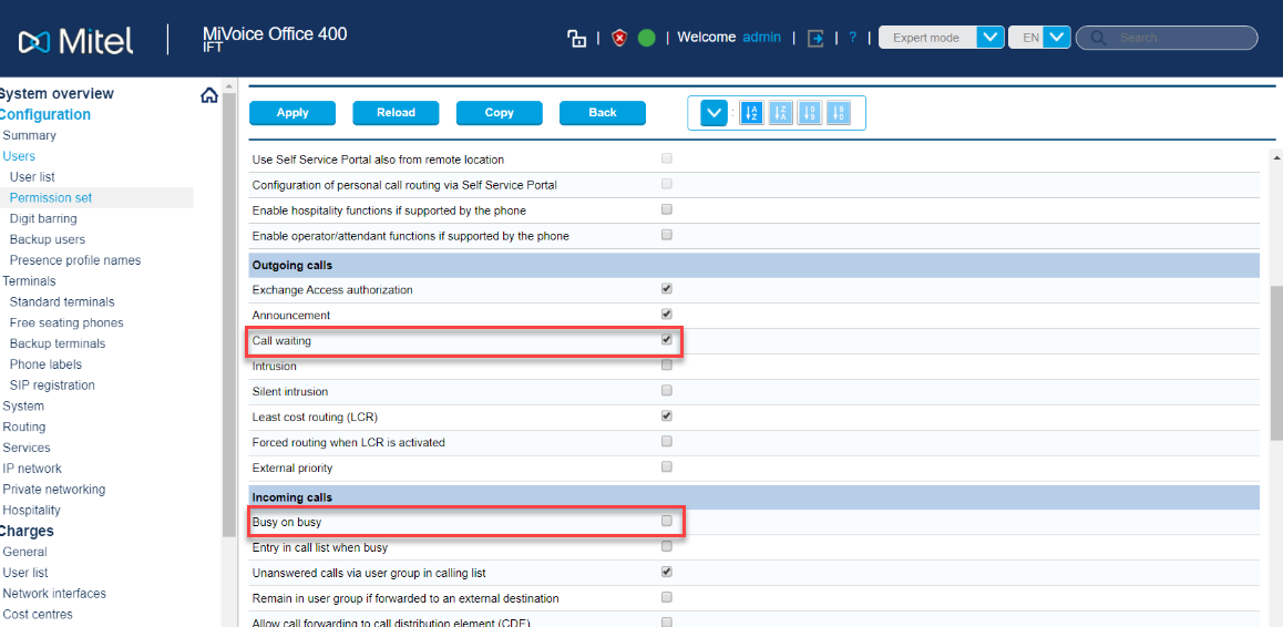 Pour les besoins de licence, un utilisateur d’admin doit être ajouté au MiVoice Office 400 PBX pour créer les informations d’identifications de l’application CloudLink qui définit la Passerelle CloudLink comme application fiable.