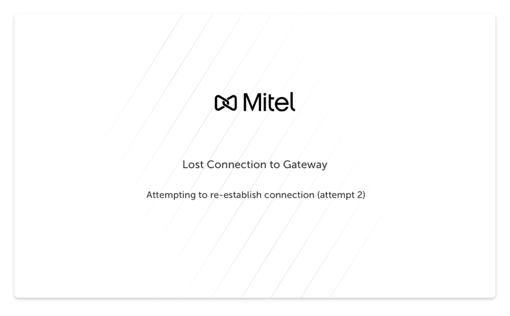 Se il browser perde la connessione con ile Gateway durante l'aggiornamento, si potrebbe vedere la schermata Connessione con il Gateway persa, come mostrato di seguito: