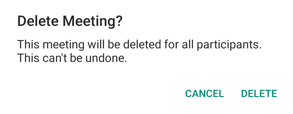 O criador de uma reunião tem a opção de eliminar a reunião criada. Tanto os criadores das reuniões como os participantes têm a opção de sair de uma reunião no ecrã Meetings.