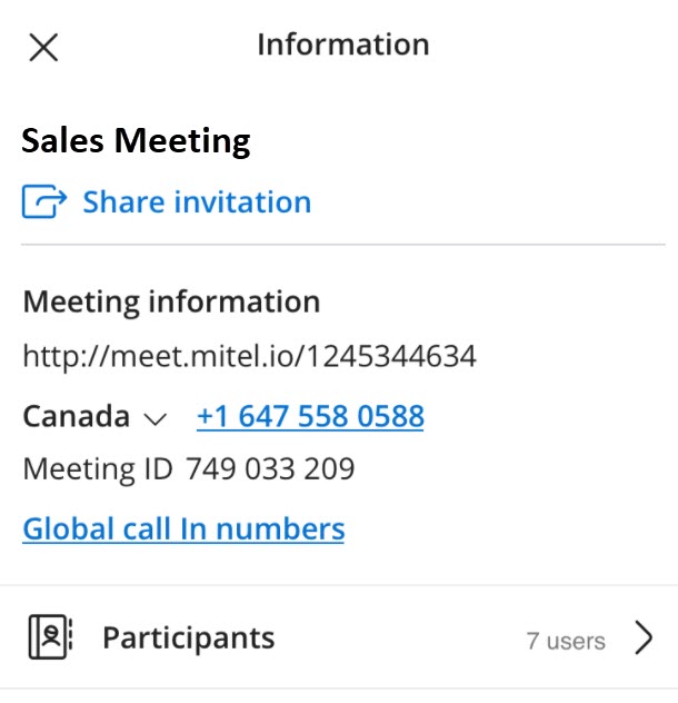 Um criador de reunião tem a opção de eliminar a reunião. Tanto os criadores das reuniões como os participantes têm a opção de sair de uma reunião no ecrã Meetings. Quando sai de uma reunião, a reunião fica oculta no ecrã Meetings. Para obter mais informações, consulte Eliminar ou sair de uma reunião.