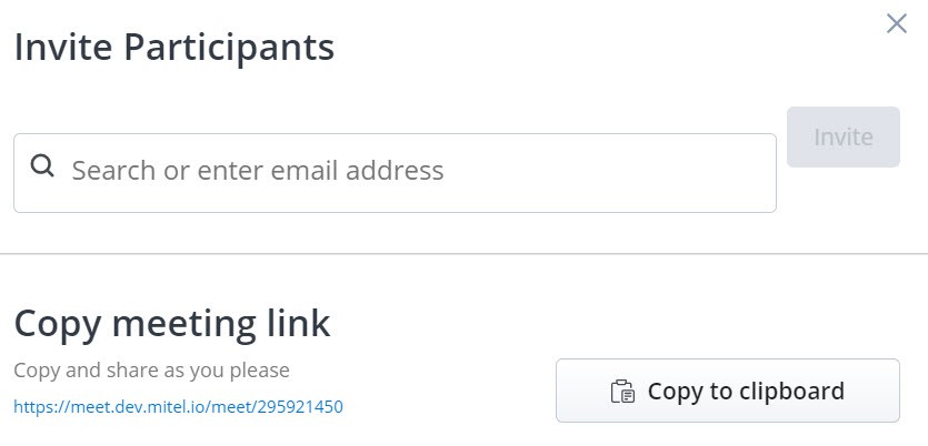 Das Dialogfeld "Teilnehmer einladen" wird geöffnet. Weitere Informationen zum Einladen von Teilnehmern zu einem Meeting finden Sie in Schritt 4 in Ein geplantes Meeting erstellen.
