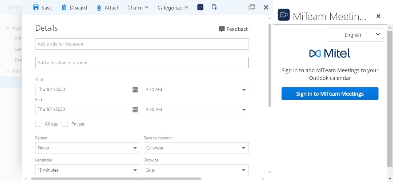 MiTeam Meetings Outlook Add-In (Web und Desktop)