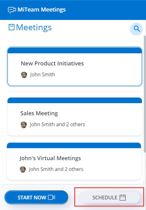 Ein registrierter Benutzer kann in der Anwendung MiTeam Meetings ein geplantes Meeting erstellen, indem er die folgenden Schritte ausführt: