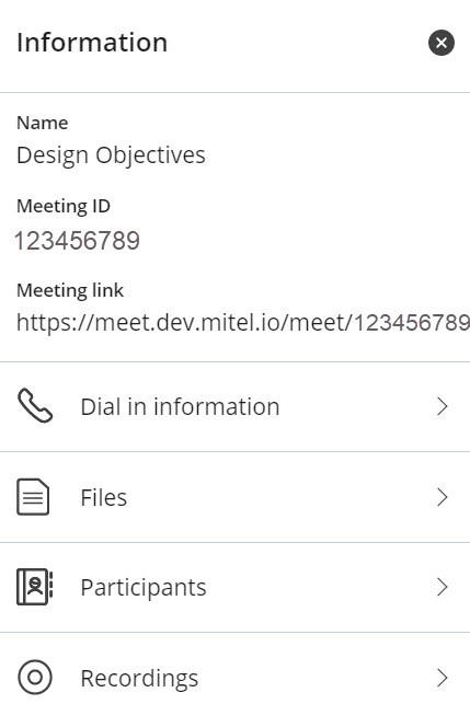 - Klicken Sie auf Einwahlinformationen, um die Einwahlnummer und die Meeting-ID anzuzeigen und die Meeting-Einladung zu kopieren.