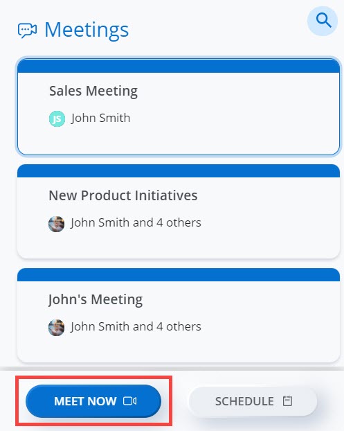 - Click MEET NOW from the Meetings section.