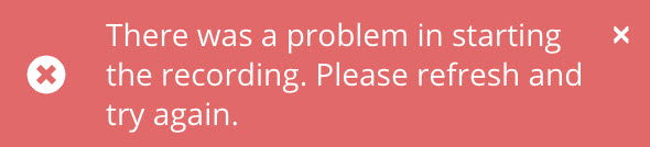 , the following error will appear. To start the recording again, you must refresh the application and click