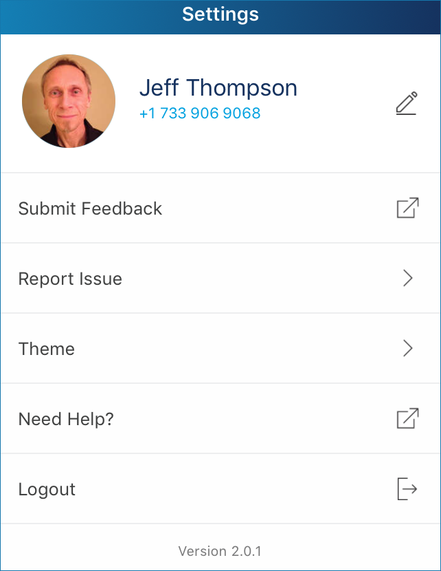 - Profile – You can change your name and avatar at any time. Just tap the area with your name at the top of the screen, tap Edit in the next screen that appears, make the desired changes, and tap save. To learn more, see Set up Your Profile.