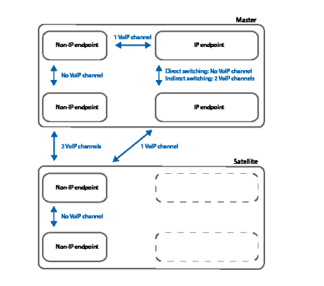 In normal operation all IP endpoints are logged on to the Master, even if locally they are situated near a satellite.