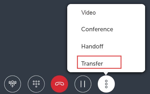 - Durant un appel audio MiCollab actif, sélectionner Transfert à partir du menu plus (