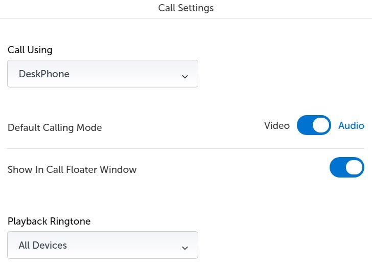 Note: Um das In-Call Floater-Fenster zu aktivieren, stellen Sie den Schalter Show In Call Floater Window toggle auf Ein.