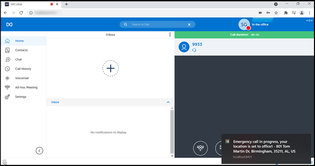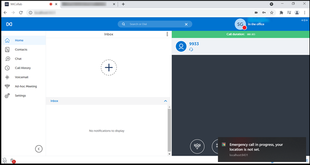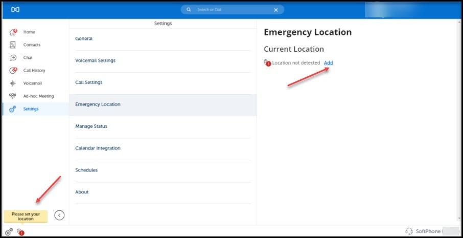 This indicator and emergency location setting will be displayed in the client only when the administrator configures the Location Service Configuration on the MiCollab server.